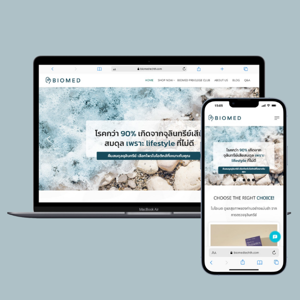 เราพัฒนาเว็บไซต์ที่เชื่อมกลยุทธ์การตลาดกับดีไซน์อย่างลงตัว เพื่อให้ธุรกิจของคุณเติบโตได้อย่างมั่นคงและยั่งยืน สร้างความแตกต่างที่โดดเด่นและพร้อมต่อยอดในทุกโอกาสทางธุรกิจ